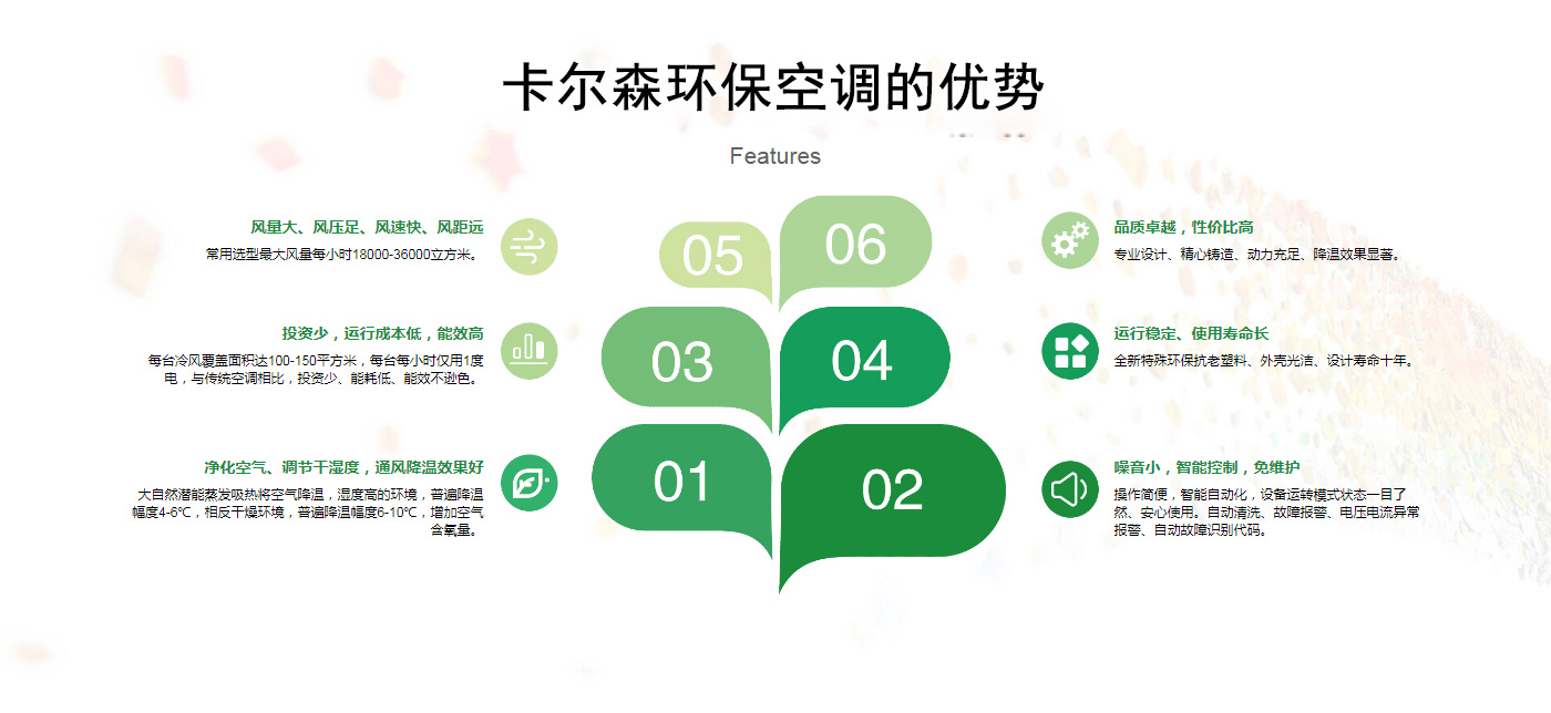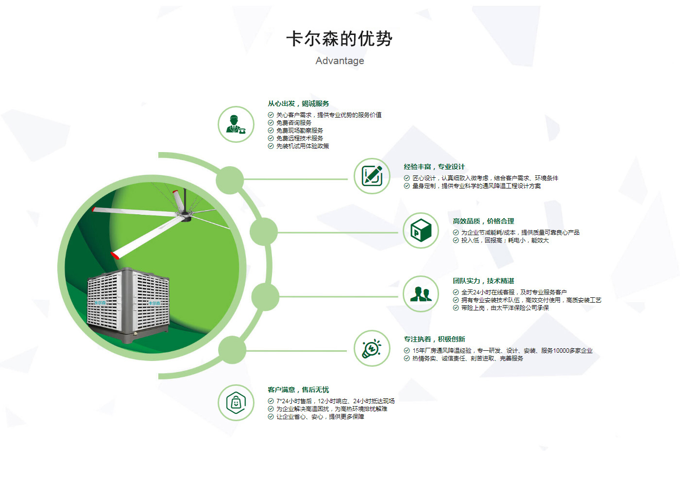 應(yīng)用范圍: 適用于高溫或有異味的車間:熱處理廠、鑄件廠、塑料廠、鋁型材廠、制鞋廠、皮件廠、電鍍廠、印染廠等各種化工廠等。 適用于勞動(dòng)密集型企業(yè):服裝廠,各類裝配車間,網(wǎng)吧等。 適用于需要降溫又需要一定濕度的場(chǎng)所:棉紡廠、毛紡廠、麻紡廠、織布廠、化纖廠、經(jīng)編廠、加彈廠、針織廠、絲織廠、襪廠等各類紡織廠。 適用于:倉儲(chǔ)物流領(lǐng)域、園藝溫室大棚通風(fēng)降溫、畜牧場(chǎng)降溫等場(chǎng)所。 全國服務(wù)熱線:13960350919